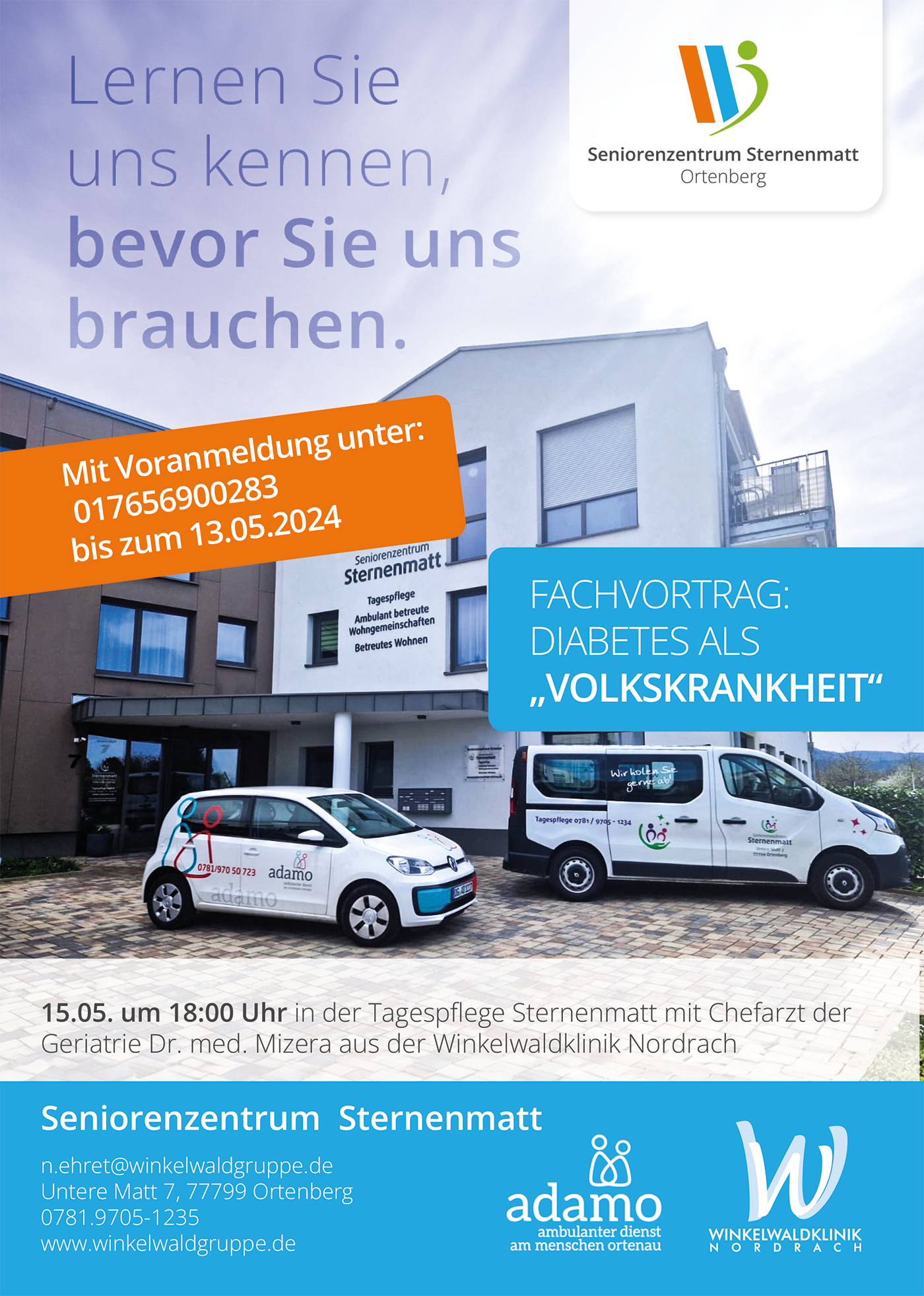 Am 15. Mai 2024 um 18:00 Uhr laden wir herzlich zum Fachvortrag „Diabetes als Volkskrankheit“ in die Tagespflege Sternenmatt in Ortenberg ein!